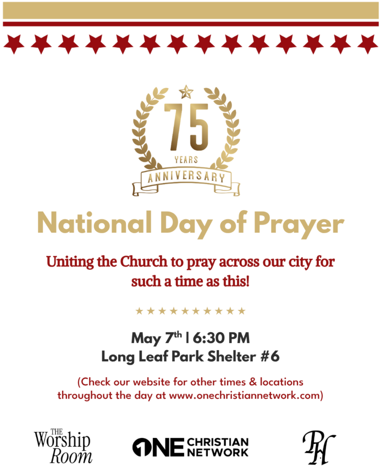 As we approach the 75th Anniversary of the National Day of Prayer, we are reminded that the earnest, heartfelt, and continued prayer of the righteous makes tremendous power available. For 75 years, churches across our nation have set aside this day to seek the Lord together. This year, One Christian Network is calling the Church of Wilmington into a significant, unified moment.